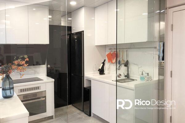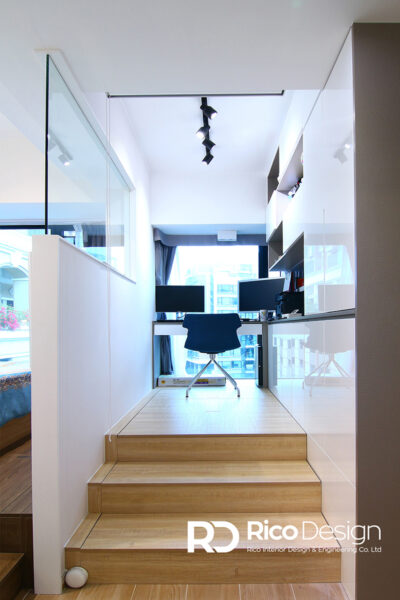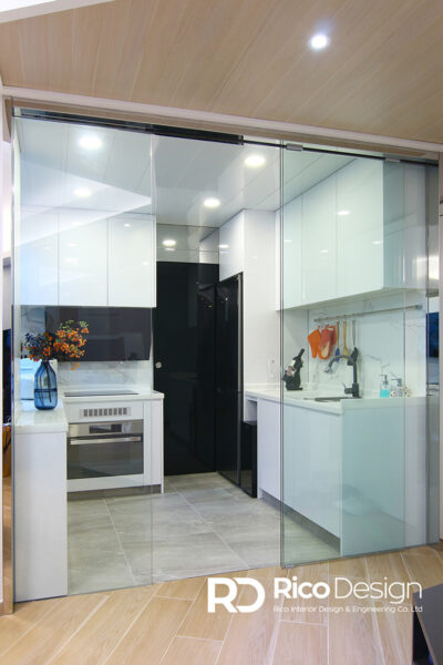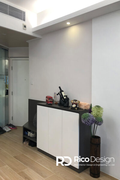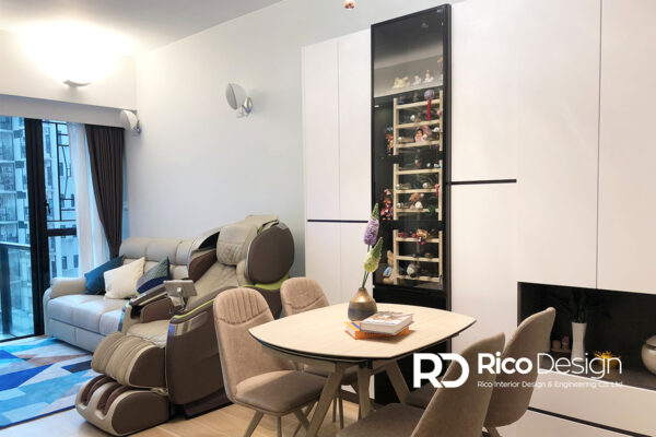 荃灣寶雲匯 室內設計 (719呎3房單位) 經已順利完工,設計師為喜好入廚樂的客人設計了一個半開方式廚房,讓客人可以好好享受入廚的樂趣。客飯廳則配置了一個紅酒飾櫃以供收藏紅酒之用,更在主房旁邊為客人打造了一個半開放式書房連地台,提高整體收納空間。